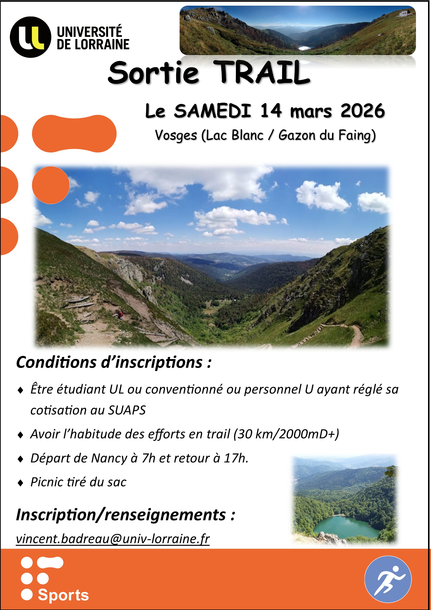 Vous trouverez ci dessous la liste des évènements (Stages, Tournois, Soirées...) à venir : Évènements SUAPS ouverts aux Étudiants et Personnels de l'UL.