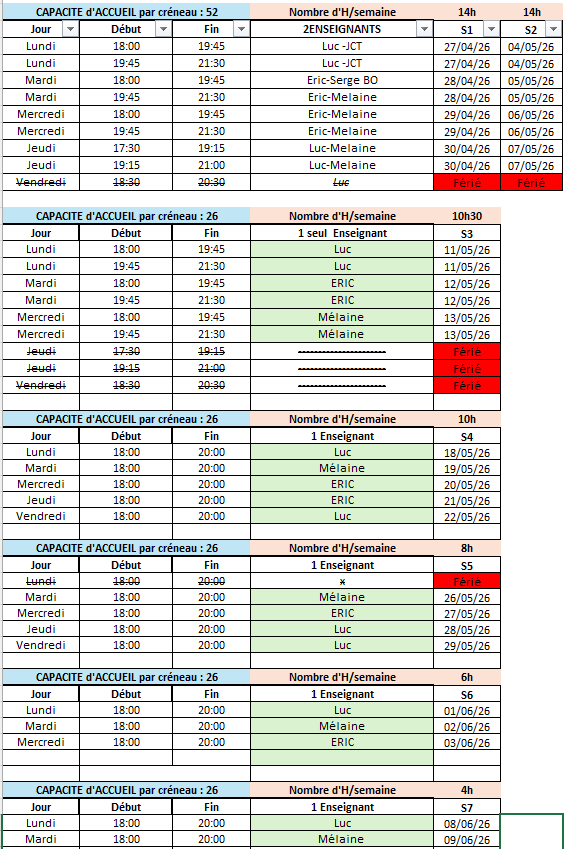 Programme de printemps : 28/04, 5/05, 12/05.